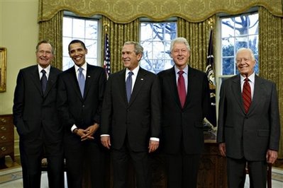 中新网1月8日电 据美国媒体报道,美国当选总统奥巴马7日称,他与布什以及三位前总统克林顿、老布什和卡特共进午餐将是一次“非同寻常的聚会”。