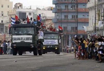 在厄瓜多总统柯雷亚的陪同下,古巴领导人、卡斯特罗之弟劳尔-卡斯特罗参加了在一处前军事基地举行的庆祝典礼。这处军营是卡斯特罗在1959年1月8日抵达哈瓦那后,向成千上万欢欣鼓舞的古巴人发表演说的地点。