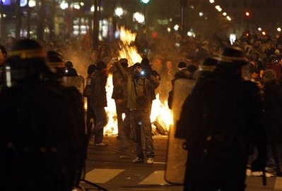 中新网1月30日电 据香港星岛环球网报道,法国全国有逾百万人在29日罢工,抗议总统萨科齐处理金融危机的手法未能令工人受惠。在巴黎,示威演变成骚乱,示威者在商业大街掷玻璃樽和放火,更与警方爆发推撞,警方施放催泪气体驱散群众。