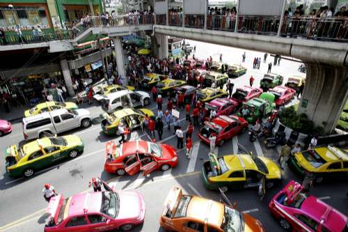 交通警察称,出租车司机也参与了示威活动,导致曼谷中心地区至少一处主要枢纽地带被堵,胜利纪念碑附近水泄不通。阿披实政府目前拒绝使用武力驱散示威者。
