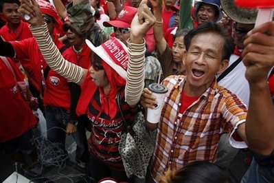 据“中央社”报道,反政府红衫军民众6日从皇家广场(Royal Plaza) 游行至总理府,要求政府让他们支持的电视台“D-Station” 重新播出;示威民众并在现场毁掉两台电视机,抗议政府以煽动大众暴力抗议的理由封锁电视台讯号。