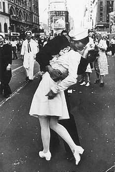 伊迪丝老太说,1945年8月15日,当日本宣布投降后,她和数以万计的群众涌到纽约街上,热烈庆祝。当时群众的情绪十分高涨,气氛热闹。就在百老汇街和第45街的交界处,突然有一名水兵走上前揽她的腰,与她深情接吻。整个过程被《生活》杂志摄记艾森施塔特拍下,成为一幅经典照片。