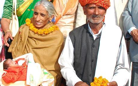 报道说,在首都新德里北方的哈里亚纳邦,现年72岁的拉姆和70岁的戴维1954年结婚,1964年,拉姆征得妻子同意,娶了她的妹妹,但依然未能如愿。两老今年初来到印度全国妇女生育中心,要求试管受精,终于成功怀孕。主诊医生毕什诺伊表示,戴维20年前已停经,上月28日产下一女,母女平安,女婴健康良好。