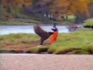 据报道,该广告是为“John West”三文鱼品牌创作的,以纪录片风格描述了这样一个情景:宁静的河边,几头熊正在捞鱼,突然一个渔民高声呼叫闯入镜头,试图赶走狗熊将鱼夺走。熊也不甘示弱配合灵活脚步用拳击回应,最后渔民制服狗熊,成功将狗熊捞的鱼抢走。