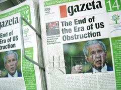 中新网12月13日电 据日本共同社报道,随着《气候变动框架公约》缔约国第14次会议在波兹南闭幕,波兰著名报纸《选举报》(英文版)12日刊行一份“假号外”,讽刺美国布什政府始终拒绝批准《京都议定书》。