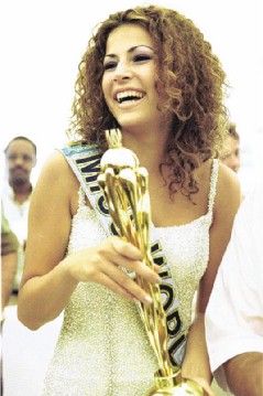 1998年世界小姐艾巴吉当年在塞舌尔赢得后冠时的照片。