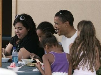 奥巴马度假遭遇停电 携女儿吃刨冰享天伦乐(图)