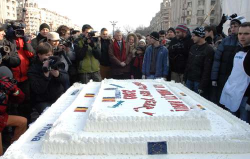 另外,那个世上最重的蛋糕重达281公斤,表面覆盖有水果和生奶油。蛋糕表面绘有罗马尼亚国旗和欧洲联盟盟旗图案,写有“2009年新年快乐”字样。该蛋糕由市政府授权制作,用于冬季节日庆典活动。组织者随后将蛋糕分发给数百名市民,包括一些对它“觊觎”已久的孩子。