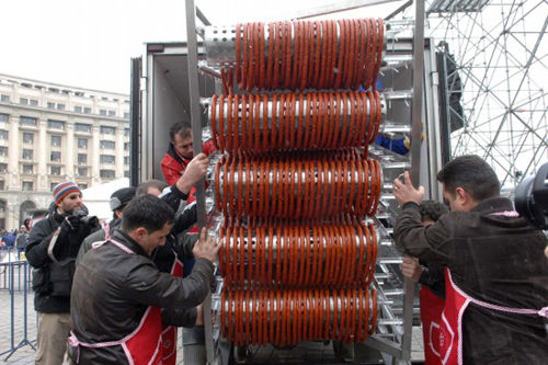 中新网12月30日电 罗马尼亚首都布加勒斯特最近刷新了两项食物之最的世界纪录。当地人使用70公斤肉以及蒜等配料制成一根392米长的香肠,打破世界最长香肠的纪录。另外,一个节日蛋糕则创下世界最重蛋糕的纪录。