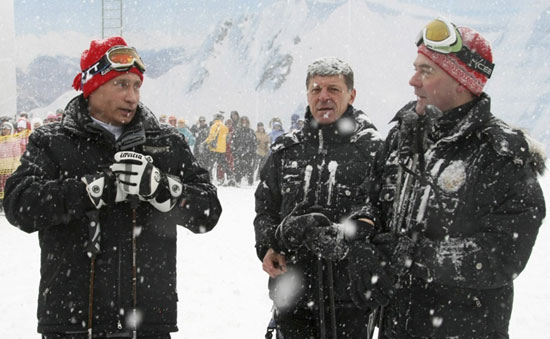 中新网1月4日电 综合报道,俄总统梅德韦杰夫和总理普京3日一起在俄罗斯南部度假胜地索契的波利亚纳滑雪场过新年。两人在一起饮茶后,梅德韦杰夫起身结账,普京紧跟在后,并未准备买单。普京表示:“无论买什么东西都是总统付钱。” 梅德韦杰夫则“大方”回应:“付账是我的工作。”