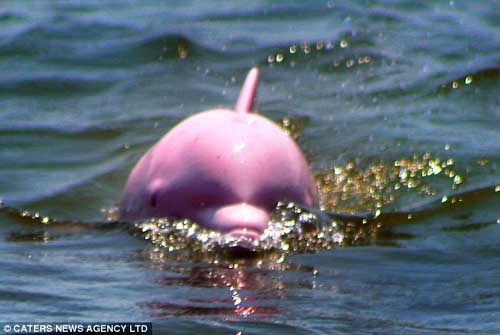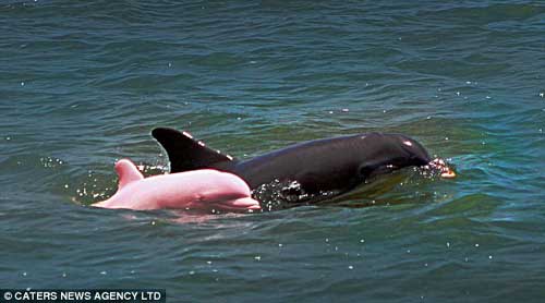 有生物学家称,这只粉红色的海豚应该是白化病“患者”。而它也可能是世界上唯一一只粉红色的宽吻海豚。