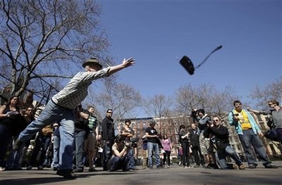 中新网4月2日电 失业让人心情郁闷,纽约日前举办了一场“失业奥运会”(Unemployment Olympics),数十名的失业人士在“你被炒鱿鱼了”项目竞跑,将满腔愤怒化为力道,在“丢办公室电话”竞赛中抛出好成绩。