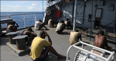 中新网5月4日电 法国海军3日说,他们在塞舌尔岛以外海域抓获了11名索马里海盗嫌疑人。之前,这些海盗嫌疑人曾经把一艘法国军舰误认为是商船。