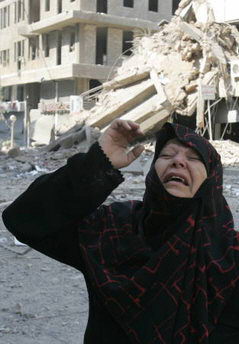 中新网8月9日电 据以色列《新消息报》网站载,一位妇女同时出现在美联社和路透社的照片中,相关的图片说明称,这名妇女因为她贝鲁特的住所在以军空袭中被炸毁而痛哭,但美国的博客们发现,这两张照片拍摄的时间相差两周,照片所反映的地点也不一样。