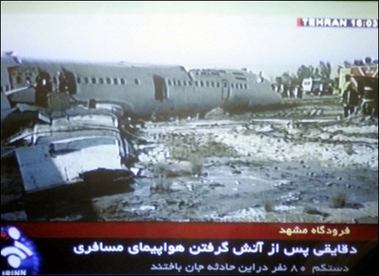 中新网9月1日电 伊朗国家电视台报道称,该国一架载有147人的俄制图-154型客机于当地时间1日下午13时45分(北京时间18时45分)在伊朗东北部圣城马什哈德机场着陆时一个轮胎爆裂,冲出跑道后起火,目前已经造成约80人丧生。