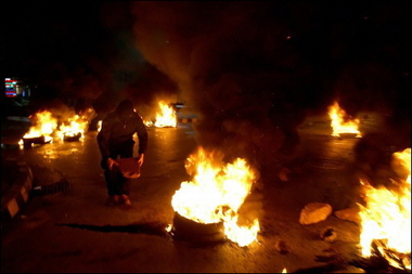 据当地目击者称,今天清晨,黎巴嫩示威者在贝鲁特城焚烧汽车轮胎,切断了交通要道,并焚烧了通往该国北部和南部的交通要道上的汽车轮胎,大量浓烟和刺鼻气味在整个城镇弥漫。当地警察和消防人员随后赶到现场,清除障碍。据悉,示威者还封锁了通往贝鲁特国际机场的道路,以及通往叙利亚首都大马士革的交通要道。