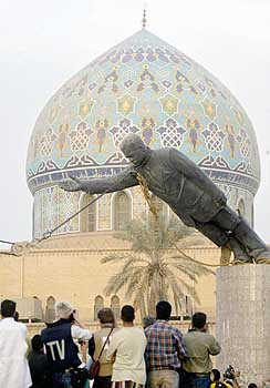 曾是伊拉克举重冠军的贾布里4年前身穿黑色外套带着人群来到菲尔杜斯广场,他用铁锤击打高达6米的萨达姆雕像的水泥底座。他当时称,虽然他的手因敲击而流血,眼睛里都是泪水,但他感到很高兴。推翻萨达姆雕像的时刻在全世界成为了一个象征,因为这意味着萨达姆的倒台。