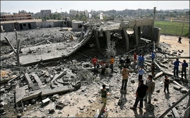 该发言人说,这起空袭锁定一处哈马斯民兵的据点,目击者称空袭将加沙南部的一座建筑物摧毁,但是否有人员伤亡情况不明。
