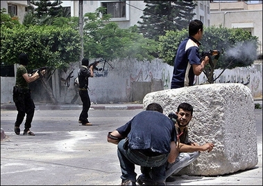 法塔赫官员今天早些时候称,他们的部队已从加沙中部地区的一些基地撤出,并摧毁了这些基地,以防它们落入哈马斯之手。冲突还扩散至法塔赫控制的约旦河西岸,哈马斯和法塔赫武装人员在纳布勒斯和附近的一个难民营发生了冲突。法塔赫武装人员当时试图闯入一家亲哈马斯的电视节目制作公司。哈马斯称有12名哈马斯武装人员受伤,它指控安全部队今天早些时候在西岸地区抓捕哈马斯活动分子。