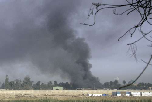 巴格达“绿区”被火箭弹轰炸,冒起大量浓烟