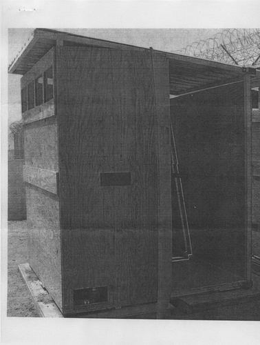 美军公布了被官方名称为“隔离箱”的箱子的照片,犯人可以被关在箱子里12小时。军方公布的三张黑白照片展示了木制箱子的基本结构,一些箱子的长宽高分别只有0.9米、0.9米、1.8米。伊拉克卫生部的资料显示,伊拉克普通男性的身高为1.7米,这意味着伊拉克犯人在被关入箱子里后的活动空间将非常有限。