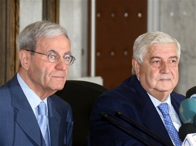 叙外长穆阿利姆(右)和黎外长萨卢赫