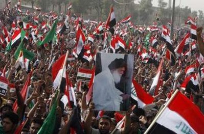 示威者响应什叶派政治人物萨德尔的号召,一大早在巴格达东部萨德尔城的穆扎法尔广场聚集。大部分示威者是年轻人,也有一些妇女和儿童。他们挥舞着伊拉克国旗,手举萨德尔画像,高喊“侵略者滚出去!我们不要驻军地位协议!”等口号,一直游行到约3公里外的穆斯坦西里亚广场。