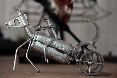 中新网4月10日电 据法新社9日报道,伊拉克巴格达举行的战争艺术展引人注目,随着战火的逐渐消退,艺术爱好者们收集起战火中枪支炮弹的碎片,极富创意的利用它们组成了一件件象征希望的艺术品。