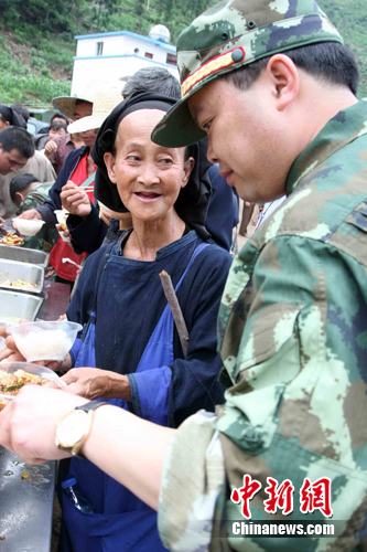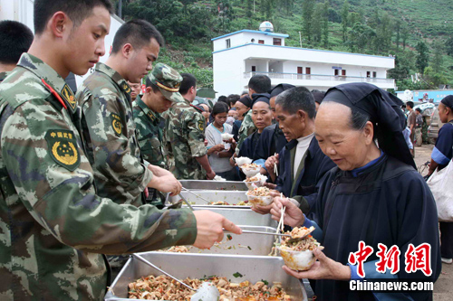 中新网贵州关岭7月1日电 6月28日贵州关岭发生山体滑坡以来,驻黔武警交通部队迅速赶赴灾区抗灾搜救,武警官兵还积极为当地受灾搬迁群众解决吃饭问题,让群众能够吃上热饭菜。