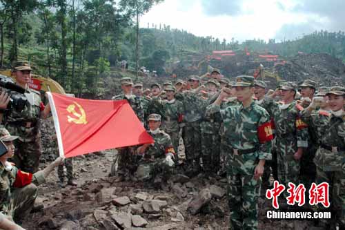 据悉,7名火线入党的武警官兵年龄最小18岁,最大25岁。在只有7分钟的火线入党仪式后,他们又迅速地投入到了一线搜救工作中去。今日,已是近千名武警、消防官兵在搜救现场连续奋战的第四天。完