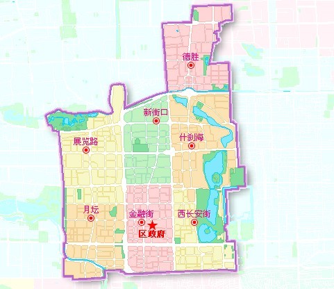 中华人民共和国成立后,1950年4月18日,中央人民政府政务院批准将北京市调整合并为16个区,今区境内为第2区和第4区全部、第5区之西半部及第13、第14区的一部。1952年9月,市政府再次调整区划,今区境内为西单区和西四区及海淀区、前门区的一部分,第2区更名为西单区,第4区更名为西四区。1958年5月经国务院批准,西单、西四二区合并为西城区至今。1987年9月北京市将朝阳区马甸0.6平方公里划给西城。至此,西城区面积31.66平方公里。现在辖区有西长安街、展览路、新街口、金融街、月坛、德胜、什刹海七个街道办事处。