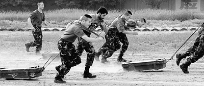 在兰州军区特种大队综合训练场,气温高达36℃,但中巴“兄弟连”官兵的训练热情依然高涨。