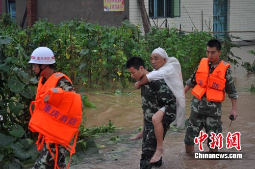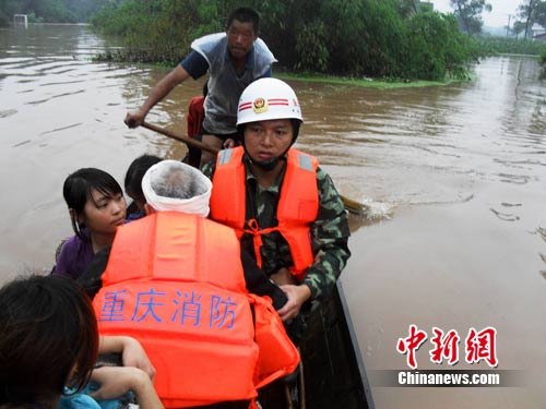 中新网重庆7月5日电 (连肖) 受暴雨袭击,5日下午16时40分,重庆市大足县龙水镇横店村山洪暴发,600余名群众被洪水围困。截至目前,大足县消防队员已营救被困群众245人,疏散转移群众405人。目前,村内仍有30余人未被转移,暂无人员伤亡报告。