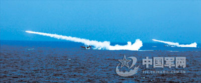 “实施导弹攻击!”只见导弹拖着长长尾焰,呼啸着扑向大海深处的小目标……很快,令人振奋的消息从各战斗舰艇传来——