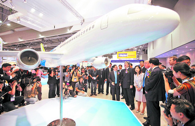 在昨日举行的签约仪式上,中国商用飞机有限责任公司与中航工业起落架公司、德国利勃海尔公司签署了起落架系统合作意向书;中国商飞公司与湖南博云新材料股份有限公司、长沙鑫航机轮刹车有限公司、美国霍尼韦尔公司签署机轮、轮胎及刹车系统合作意向书。