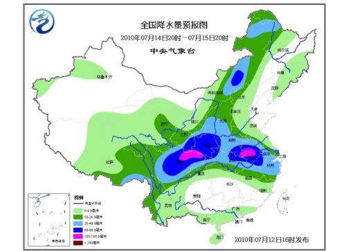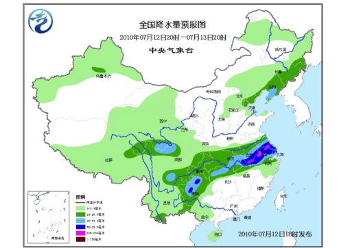 中新网7月12日电 据中央气象台网站消息,未来三天,青藏高原东部及其以东大部地区有一次明显降水天气过程,其中,黄淮西部、江汉、江淮、江南北部、四川盆地等地有大到暴雨,部分地区有大暴雨;青海东南部、内蒙古中东部、黑龙江西北部、吉林东部、山西西南部、陕西大部、甘肃南部和东部、贵州大部、西藏东南部、云南西部和南部等地的部分地区有大雨,局地有暴雨;上述部分地区并伴有短时雷雨大风或冰雹等强对流天气。