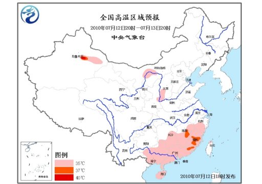 中新网7月12日电 中央气象台7月12日18时继续发布高温蓝色预警:预计,明天白天,内蒙古河套地区、陕西关中东部、山西西南部、湖南中南部、江西中南部和东北部、浙江中南部、福建大部、广东大部、广西大部、海南大部、台湾西北部等地有35℃以上高温天气、局地温度可达37~38℃。