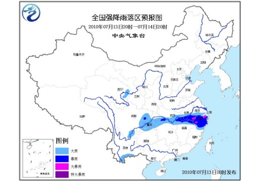 中新网7月13日电 中央气象台7月13日18时继续发布暴雨橙色预警:预计,7月13日20时到7月14日20时,湖南北部、湖北东部和南部、安徽南部、江西北部、浙江大部等地有大到暴雨,其中,安徽南部、浙江北部和西部等地的局部地区有大暴雨;四川东部和南部、重庆中南部、贵州北部、云南南部和东北部、青海东北部等地的部分地区有大雨、局地暴雨。上述局部地区并伴有短时雷雨大风等强对流天气。