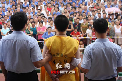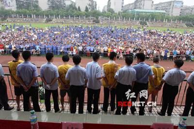7月14日,湖南省娄底市优化涟钢及其周边环境公捕公判大会在湖南华菱涟钢集团公司足球场召开。