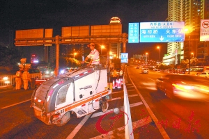 本报讯(记者倪明、王鹤)从昨日22时开始,内环路南田路入口至江湾桥南出口,黄埔大道放射线出口段两处路段约4公里全封闭施工,施工单位将趁着周末和单双号限行,交通量相对较少的机会24小时刨铺沥青,争取在下周一白天重新开放封闭路段。昨晚10时07分,记者驱车前往南田路入口,只见电子提示牌上已闪现封闭通知,沿路可见悬挂的车辆绕行指引提示牌。在现场交警的指挥下,交通秩序尚好。交警人士透露,大修启动后,马上迎来单双号演练,对交通影响不大,但单双号演练结束后,广州交通将面临考验。