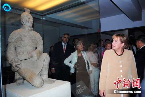 中新网西安7月17日电(记者 冽玮)正在西安进行访问的德国总理默克尔17日先后参观了大唐芙蓉园和秦始皇兵马俑博物馆,浓郁的秦风唐韵令她倾倒。她表示,中国的文化很有根源,回去以后,她会尽自己的努力,以使德国人更好地了解中国,了解中国文化。