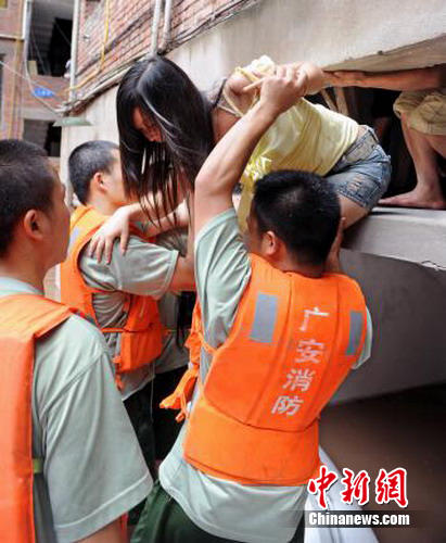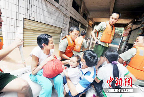 在特大洪水来临之际,广安市武警官兵充分发挥“特别能吃苦,特别能战斗,特别能奉献”的精神,积极战斗在抗洪抢险第一线,与洪水赛跑,与时间赛跑,深入街巷搜寻和和转运被洪水围困的居民,确保群众生命安全。 截至记者发稿时,广安目前还没有因为洪水造成的人员伤亡。(完)
