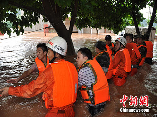 中新网内江7月19日电(钟艳华 徐颖岚 记者刘忠俊)连日来,四川内江地区普降暴雨,沱江河水位迅速上涨,此次暴雨洪涝灾害造成该市5个县(区)113个镇乡(街道)受灾,受灾人口达28.43万人,共造成直接经济损失2.63亿元。险情发生后,内江市消防支队160余名官兵昼夜奋战在抗洪抢险第一线,成功处置灾情、险情30余起,成功疏散群众500余人,救出群众220余人,为国家和群众挽回经济财产损失上千万元。