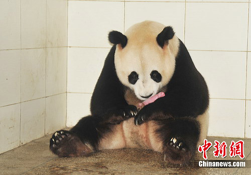 今年3月22日,“菊笑”与研究中心的雄性大熊猫“白杨”、“武岗”通过自然交配和人工受精的两种方式配种成功。7月初,“菊笑”食欲明显减弱、舔阴的频率逐步增加,待产现象明显。