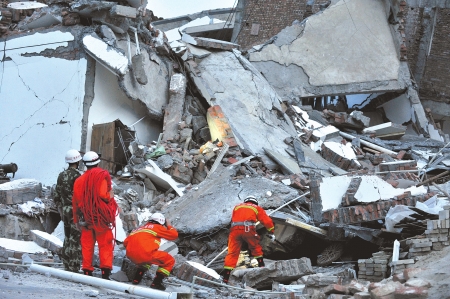 踏着满地砖头瓦砾,战士们穿行在残垣断壁之间,不断用扩音器喊话:“里面还有人吗?”每喊一句,战士们便停下身来,生怕自己轻微的脚步,掩盖了被困者发出的声音。