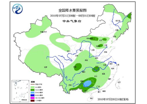中新网7月28日电 据中央气象台预报,未来10天,中国主要降雨将出现在华北北部、东北、西南地区东部、东南部沿海及西藏东南部等地,降雨量一般有30-70毫米,局部地区有90-150毫米,与常年同期持平或偏多3-7成。中国其余大部分地区降雨量比常年同期偏少。