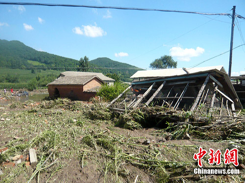 在梨树沟断桥旁,有几名穿着迷彩服的民兵,正指挥着群众小心过河。两岸到处都是从镇里出来和要进镇的群众。记者一行开始渡河,随后步行了几公里进入旺起镇内,此时路面到处都是洪水过后的痕迹,一些居民正在清理马路上的淤泥。