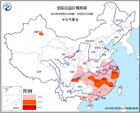 未来三天,黄淮大部、江淮、江汉、江南、华南大部、四川盆地中东部、重庆、贵州东部及甘肃中部、陕西大部、山西中部和西南部等地有35~37℃的高温天气,局部最高气温可达38℃以上。