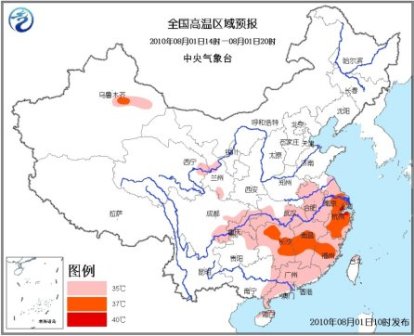 预计,今天下午,黄淮南部、江淮大部、江汉南部、江南、华南中东部、四川盆地东部和南部、重庆大部、贵州东北部、甘肃中部以及台湾北部等地有35~37℃的高温天气,局部地区最高气温可达38~40℃。