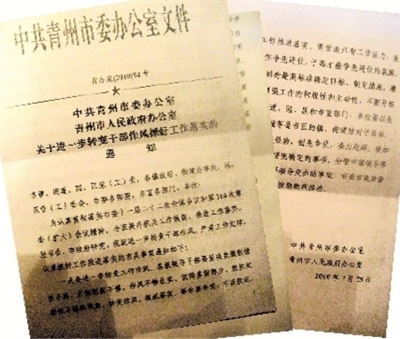 几经周折,记者获得了这份通知的复印件,其中未明确要求公务员周六加班,但文中提到“所有公务员要弘扬‘五加二、白加黑’的精神”。